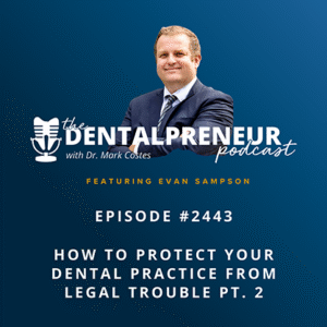 On today’s episode, Dr. Mark Costes sits down with dental attorney Evan Sampson for a deep dive into the legal issues dentists face every day—often without realizing it. In Part 1, Evan shares his journey from litigator to dental-focused counsel and how his unique background helps him proactively guide practice owners through employment law, regulatory […]